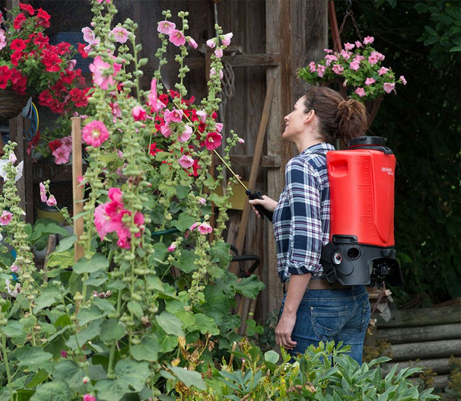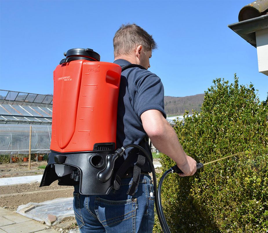 Mit dem drehzahlgesteuerten Rückensprühgerät gelingt es Ihnen, Pflanzen bedarfsgerecht und zuverlässig mit einem konstanten Sprühbild zu bewässern.