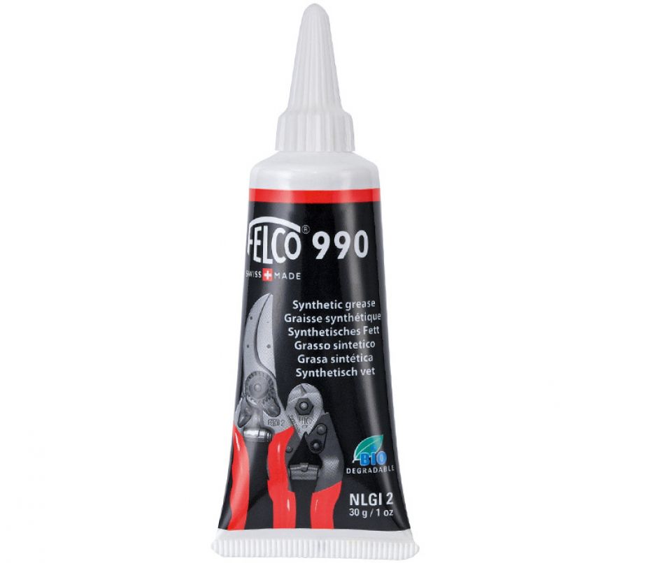 Wenn das Fett FELCO 990 auf FELCO-Werkzeuge zwischen die Klinge und die Gegenklinge, die sich in ständigem Kontakt befinden, gegeben wird, hält es diesen Bereich gut geschmiert, minimiert Verschleiß und weist Wasser ab.