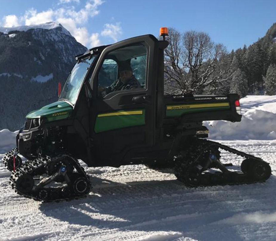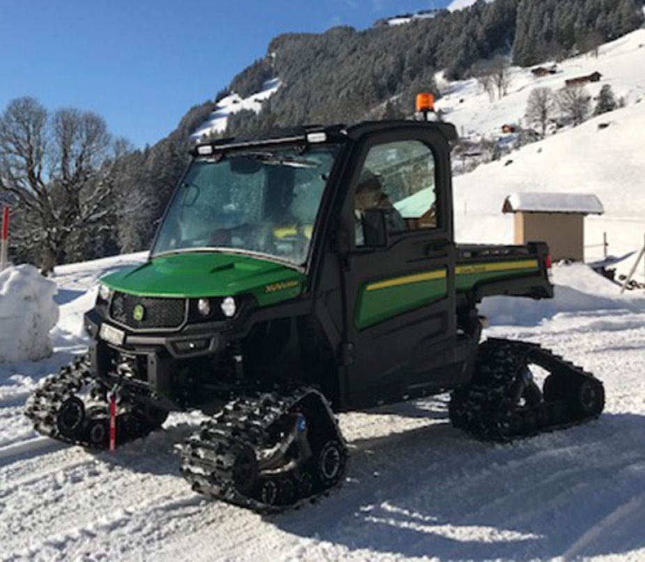 Vorne finden bis zu drei Insassen Platz, sodass Sie mit mehreren Helfern im Gelände unterwegs sein können.