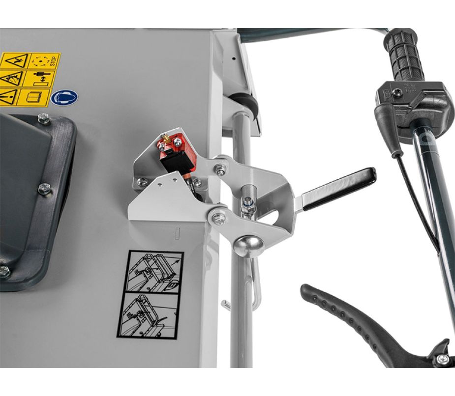 Höchst praktisch ist die einfache, schnelle Entleerungstechnik. Einfaches Umlegen eines Hebels stellt den Motor ab und entriegelt den Fangsack.