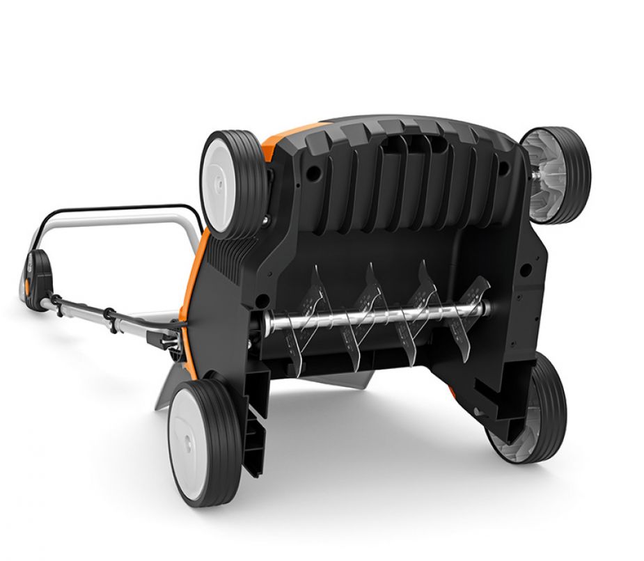 Dank einer Arbeitsbreite von 34 cm kombiniert das Gerät hohe Wendigkeit mit Effizienz – insbesondere auf verwinkelten Rasenflächen.