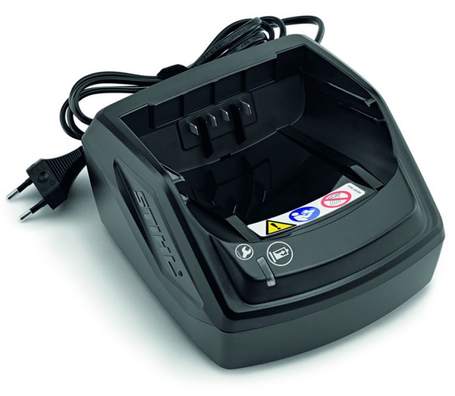 Kompatibel mit STIHL Akkus AK und AP. Mit Betriebszustandsanzeige (LED) und passiver Akku-Kühlung. Kabelaufwicklung mit Klettband. Wandmontage möglich.
